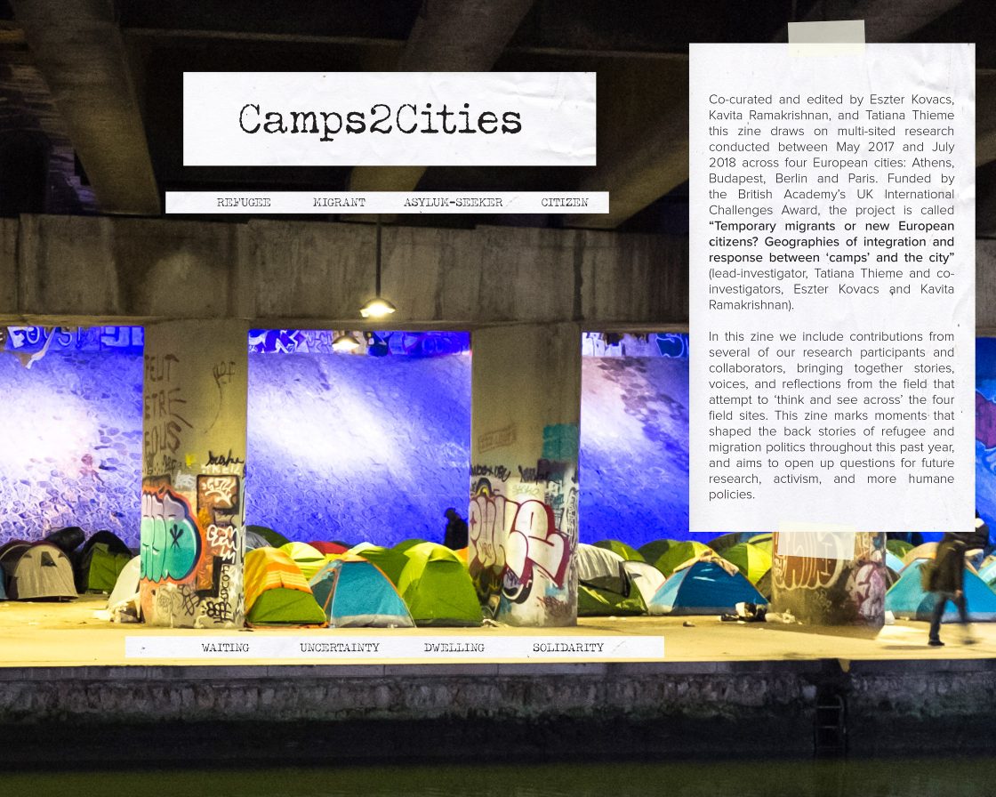 The research, website and zine together seeks to mark moments that shaped the back stories of refugee and migration politics throughout this past year, and aims to open up questions for future research, activism, and policy. For more information, contact the editors or obtain a copy of the zine please visit the main project site: www.camps2cities.com