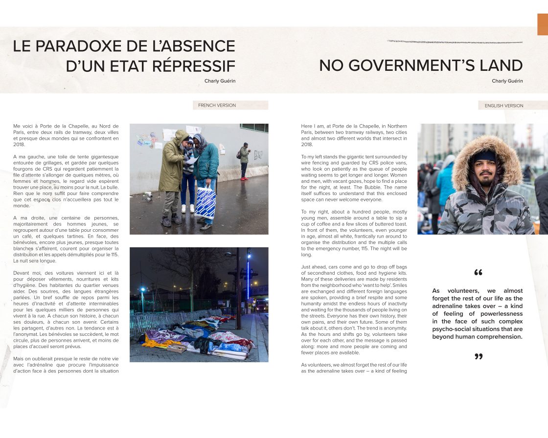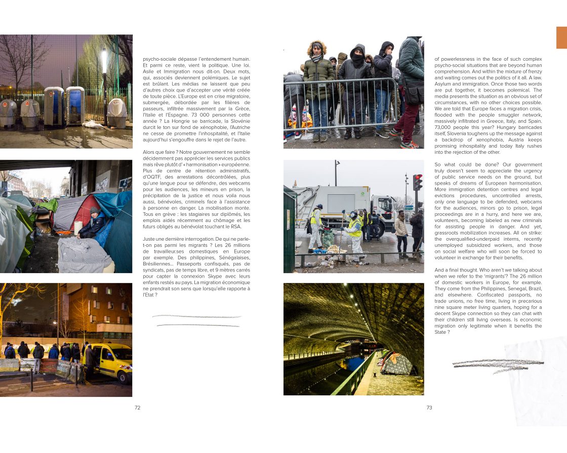 Photographer Toby Smith collaborated with the team and joined them on field trips to Paris and Athens – generating new documentary imagery to illustrate and inspire the research process. The editors collated contributions from their research participants and collaborators – bringing together stories, voices, and reflections from the field that attempt to ‘think together’ and ‘think across’ the four field sites. Toby Smith was commissioned to produce the project’s website utilising an original wordpress design by Stirtingale. Illustrator Emily Jayne Bowers was commissioned to design a printed 50 page zine.