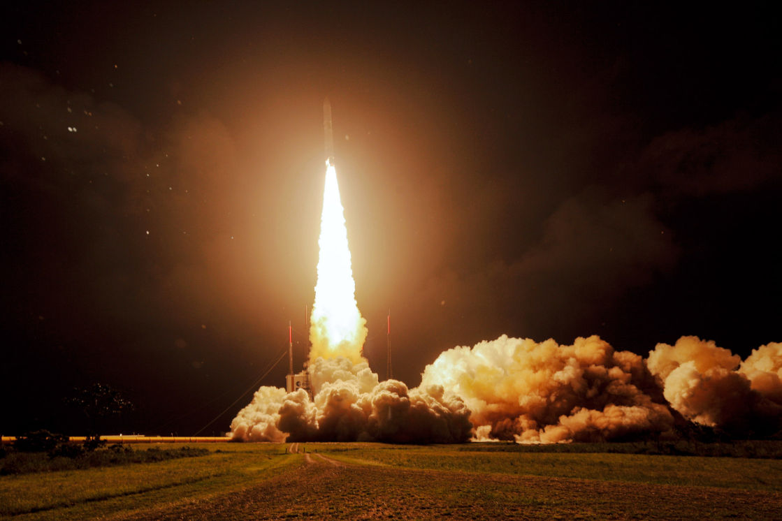 Saturday, March 22, 201, 22:04 UTC. A searing flash of magnesium lights the night sky as 2 solid rocket motors and a Vulcan engine lift 780 tonnes of rocket ship towards the heavens. 4 seconds later at 4km away the ground shook and the air reverberated. I was stood behind my tripod tracking the launch in HD on a 600mm lens with another camera snapping stills at 12 FPS on a 200mm lens clamped to a brick wall. My fingers and toes were crossed hoping that 3 remote cameras had sprung into life on timers capturing the same scene at wide angle!